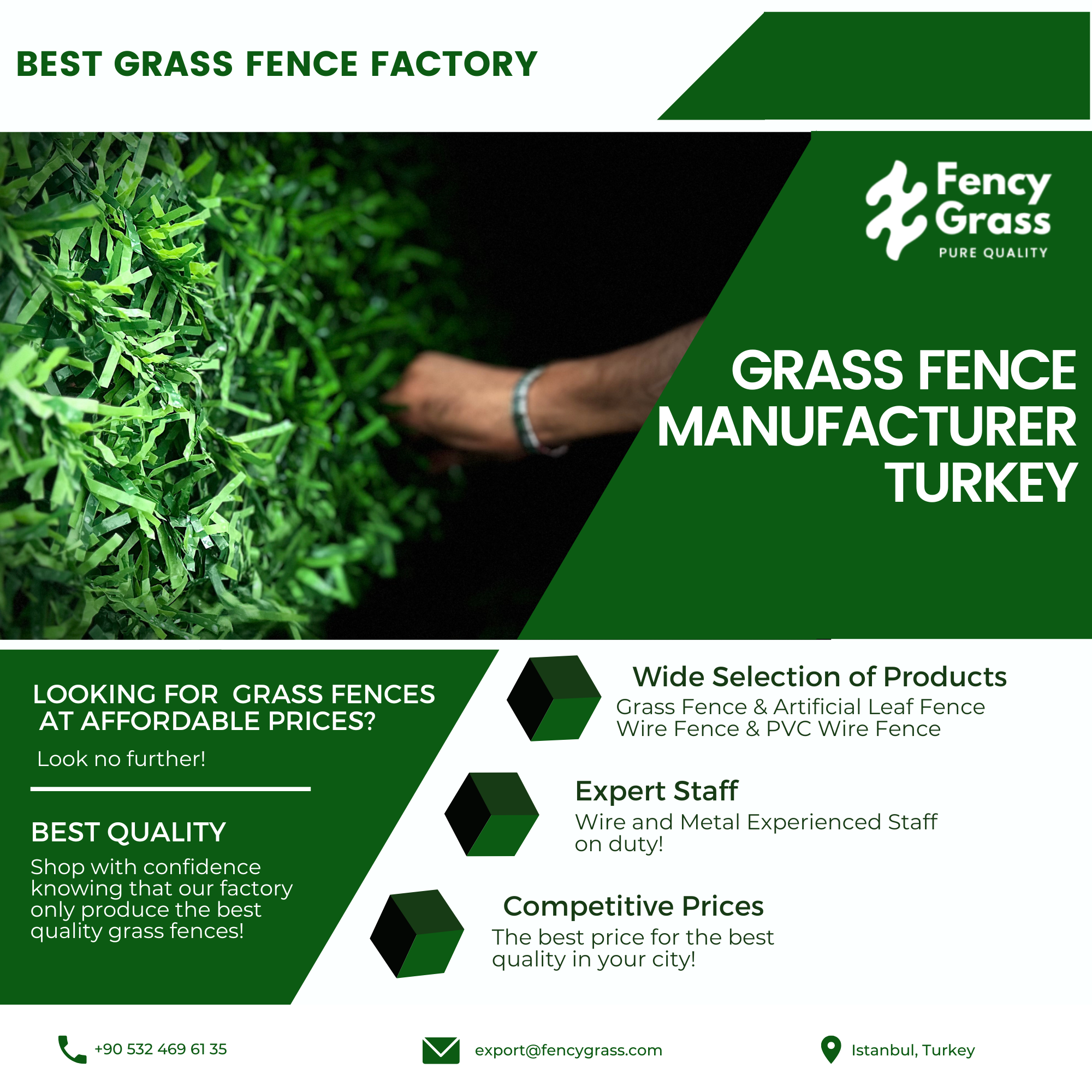 In this article, we explain why Turkey is the best country for grass fence manufacturing and why Fency Grass is the leading supplier for distributors, DIY stores and contractors worldwide.