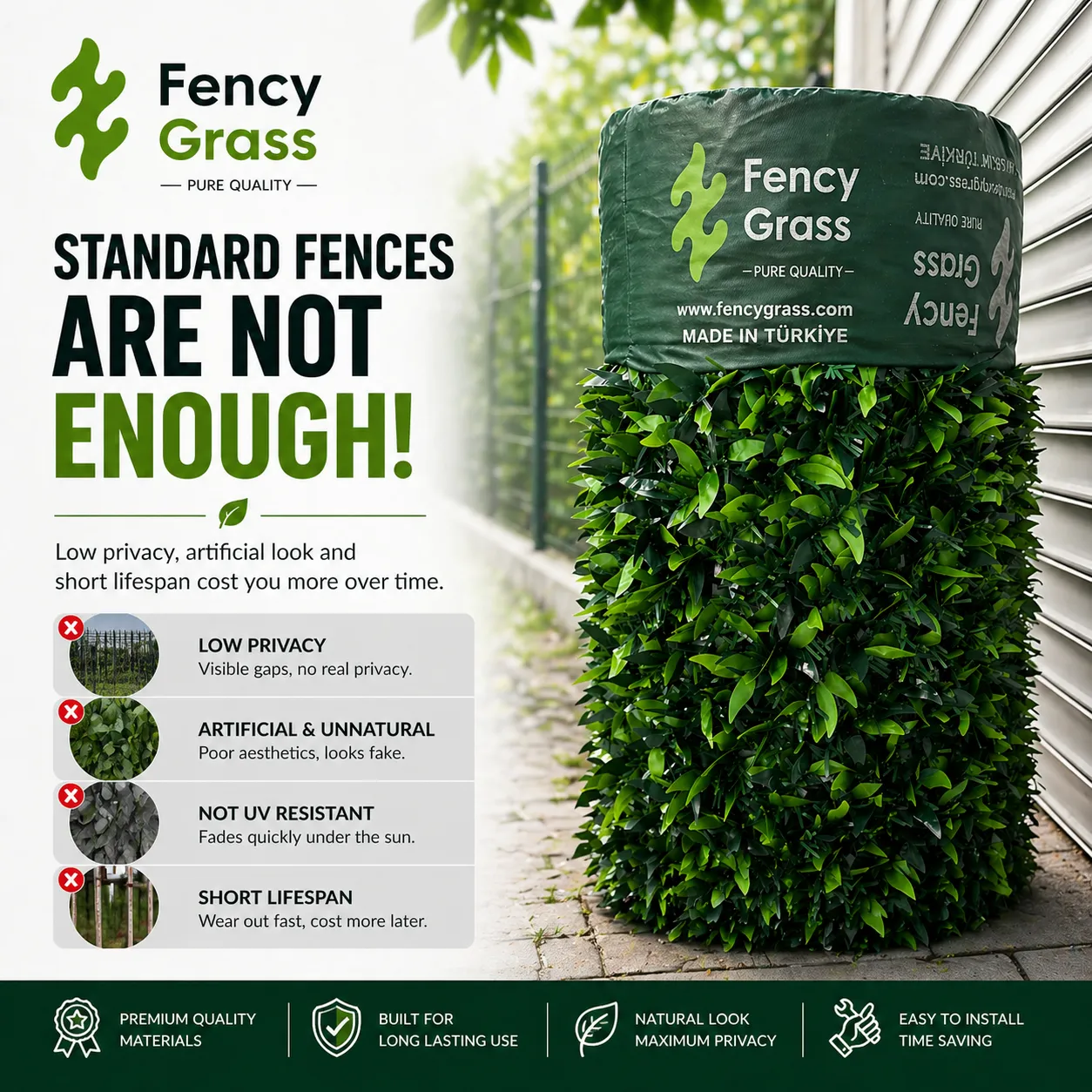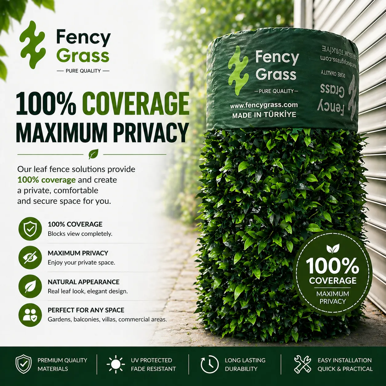 Unlike standard fences, Fency Grass products offer a realistic leaf texture, delivering a premium and natural aesthetic.