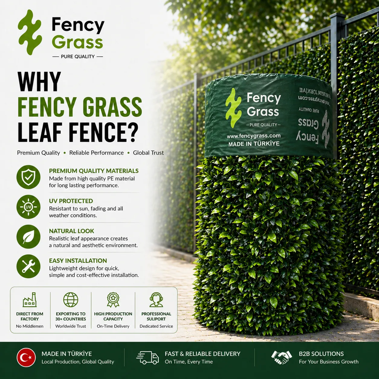 At this point, Fency Grass stands out as a global supplier of premium leaf fence and artificial grass fence solutions.
